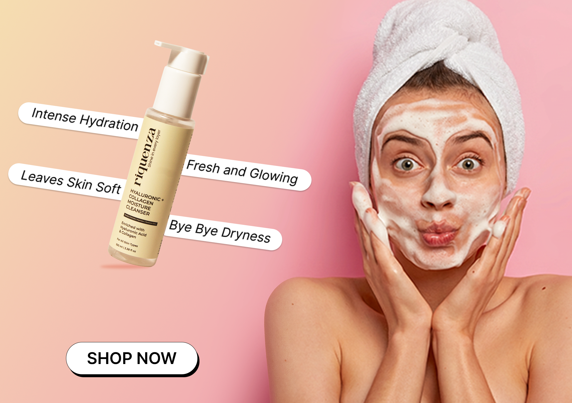 SHOP NOW >>The Hyaluronic + Collagen Cleanser is very gentle. It cleans well without stripping moisture. My skin feels soft, fresh, and hydrated after every wash.